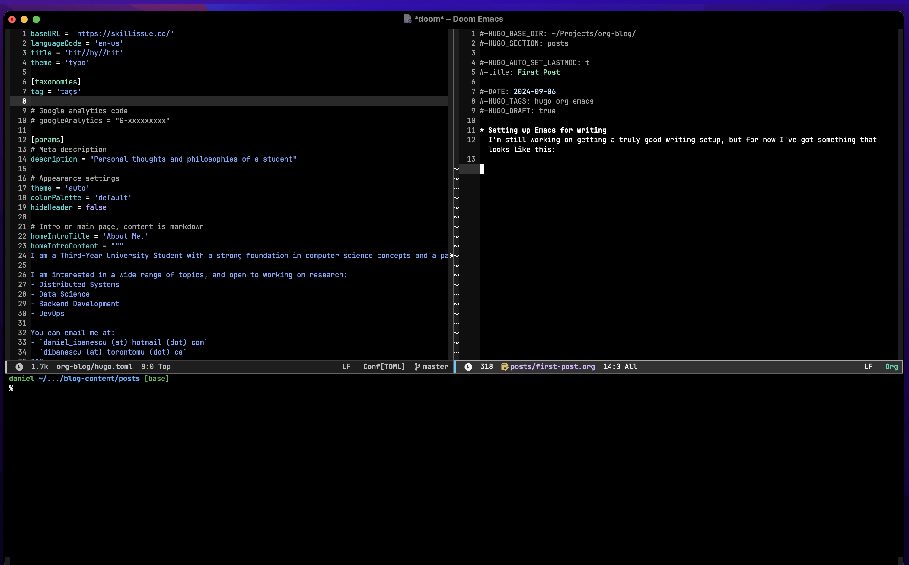 I am not a writer by default, but I do like to note things down, and I’ve always had trouble doing that consistently (i.e journaling). I actually haven’t found a super good reason, but it IS a separate program (not necessarily in terminal), that has fairly good vim keybindings (which I cannot live without), and has so much flexibility in configuration that it allows me to create both a writing environment and a solid programming environment.